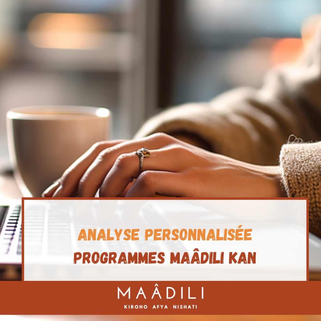 Les analyses personnalisées sont aussi faites pour vous aider à aller plus loin dans les différents programmes en ligne que vous pouvez retrouver sur Maâdili-kan.com. Chaque programme apporte un effet cumulé positif au coeur de votre santé et bien-être. Si vous avez des questions sur les programmes ou sur la manière de les adapter le plus possible à votre vie et à votre échelle de capacité actuelle, Alors n’hésitez plus.